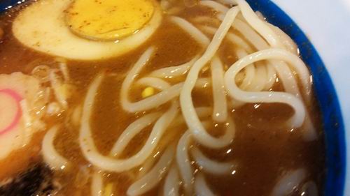 濃厚スープに太麺が絡みます。