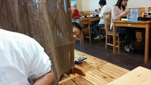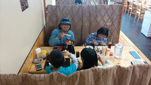 後ろの席には気になる家族がランチをしていました(笑)