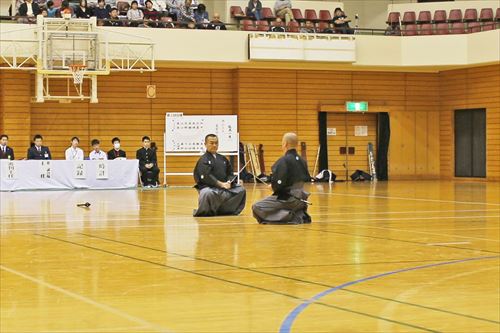 師範の岩立三郎先生(範士八段)が元警視庁主席師範の西川清紀先生(教士八段)を